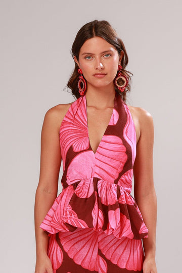 Top de mujer, tipo peplum con tira de amarrar en cintura o espalda.