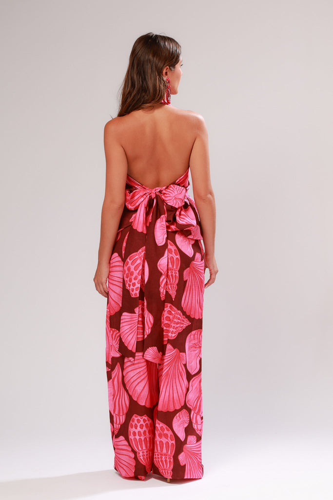 Tela de Lino gruesa. Estampado exclusivo conchas burgundy y fucsia.